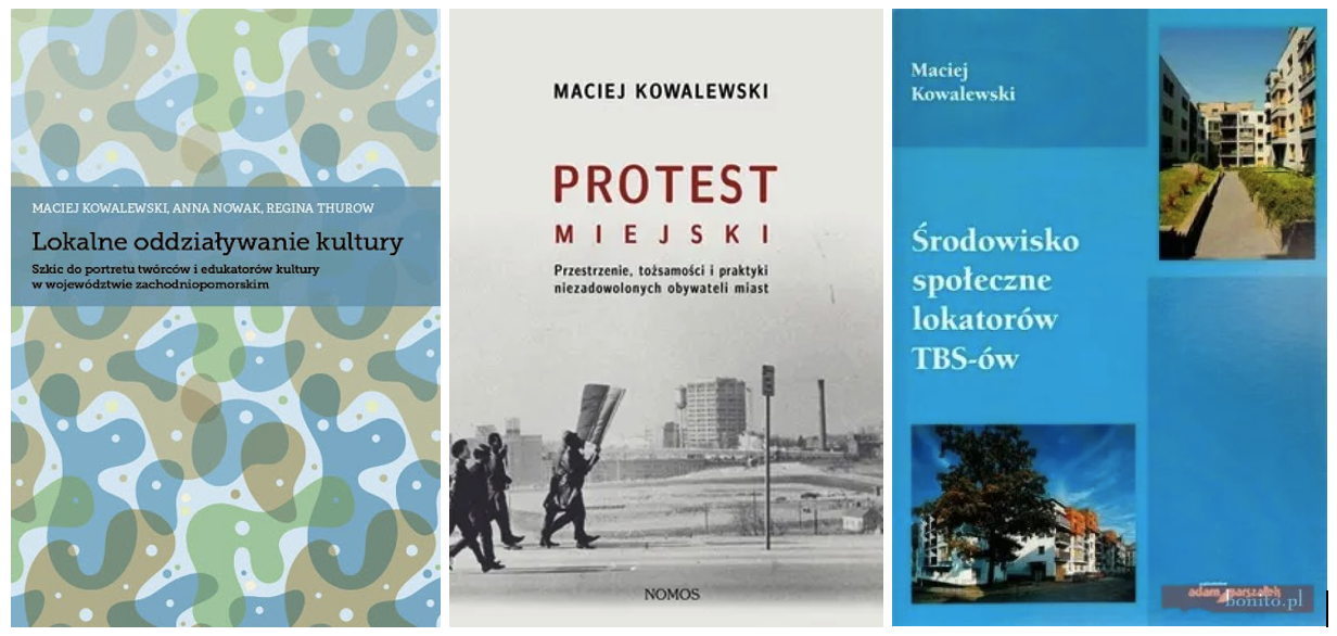 In Polish Artykuły w czasopismach Kowalewski, M., Ostrowski, M., Sobolewska, M., Kowalewska, D., & Predel, N. (2024). Ambasada Natury. O znaczeniu porastania i innych relacjach z roślinami. Porównania, 36(2), 295-312. Kowalewski, M., & Ostrowski, M. (2023). Projektowanie protestu: przestrzeń publiczna (nie) przyjazna demonstracjom ulicznym. Journal of Urban Ethnology 21, 137-148. Rakoczy, R., Kowalewski, M., Ossowicz-Rupniewska, P., & Nowak, M. J. (2023). Szanse i bariery zachodniopomorskich środowisk naukowych na tle krajowych uwarunkowań rozwoju nauki. Kwartalnik Nauka 2, 163–177 Kowalewski, M. (2022). Demonstracje równoczesne i problem pomiaru „siły liczb”. Studia Socjologiczne 3(246): 159-185. Kowalewski, M. (2019). Niejednoznaczna odpowiedź miast na populizm i kryzys demokracji. Studia Socjologiczne, 3(234): 55-80. Kowalewski, M. (2018). Względność i ulotność miejskiej wspólnoty. Miscellanea Anthropologica et Sociologica, 19(1): 54-66. Kowalewski, M. (2017). Architektura przestrzeni politycznej: plac Solidarności w Szczecinie. Czas Kultury, 33(4): 42-49. Kowalewski, M. (2016), Obywatelstwo miejskie. Wokół idei i niektórych rozwiązań formalnych. Przegląd Socjologiczny, LXV(1): 27-47 Kowalewski M. (2014), Innowacje społeczne: obywatelskie usprawnienia miast, Studia Miejskie, 15: 91-100 Kowalewski, M. (2014), Karnawalizacja protestu, Stan Rzeczy, 7(2):198-216 Kowalewski, M. (2014), Erotyzacja nadmorskiego wypoczynku. Nagość na pocztówkach z polskich kurortów, Kultura i Społeczeństwo, 59(2): 73-89 Kowalewski, M., Nowak A., Thurow R. (2014), Społeczny proces tworzenia lokalnych strategii rozwiązywania problemów społecznych: partycypacja mieszkańców i dystrybucja wiedzy, Polityka Społeczna, 487(10): 33-37 Kowalewski, M. (2013), Organizowanie miejskiego aktywizmu w Polsce: Kongres Ruchów Miejskich, Przestrzeń Społeczna (Social Space), 6(2): 99-124 Kowalewski, M. (2013), Wandalizm jako forma oporu wobec współczesnej sztuki ulicy, Kultura Współczesna, 79(4): 153-164 Czubara, T., Kowalewski, M., Thurow R. (2013), Sytuacja kobiet w przedsiębiorstwach zachodniopomorskiego rynku pracy. Raport z badań opinii pracodawców, Opuscula Sociologica, 6(4): 81-92 Kowalewski, M. (2013), Miasto jako arena protestów, Konteksty społeczne, 1(1):18-24 Kowalewski, M. (2011), „Tam, gdzie kiedyś był Komitet Wojewódzki”. Czy istnieje wspólna pamięć o mieście?, Przegląd Socjologiczny, LX(2-3): 343-365 Kowalewski, M. (2011), Szczecińskie Jasne Błonia: Przestrzeń publiczna jako narzędzie budowania tożsamości, Przegląd Zachodniopomorski, XXVI (2): 103-118 Kowalewski, M., Nowak A., Thurow R., (2011), Kultura narzędziem rozwiązywania problemów społecznych miast, Praca socjalna, XXVI (2): 38-49 Kowalewski M., Ostrowski M. (2010), Mieszkanie – przestrzeń prywatna? Praktyki uniformizacji wnętrz, Architecturae et Artibus, 1(3): 39-46 Kowalewski, M. (2009), Poczucie własności mieszkania lokatorów Towarzystw Budownictwa Społecznego, Ruch Prawniczy, Ekonomiczny i Socjologiczny, 3: 197-212 Kowalewski, M. (2009), „Mieszkam w TBS-ach”. Społeczne identyfikacje mieszkańców budownictwa społecznego, Studia Regionalne i Lokalne, 35(1): 95-109 Kowalewski, M., Królikowska A. (2008), Autorytet w laboratorium demokracji. Analiza problemu lustracji Kościoła, Przegląd Religioznawczy, 230(4): 127-143 Monografie Kowalewski M., Nowak A., Thurow R. (2018), Lokalne oddziaływanie kultury : szkic do portretu twórców i edukatorów kultury w województwie zachodniopomorskim. Szczecin: WNUS